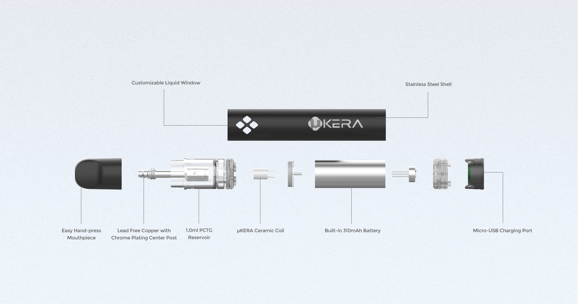 μKERA GP disposable battery is a simple and stylish disposable Vape battery.  Draw activated without a button.  Endlessly customizable to fit your branding needs.