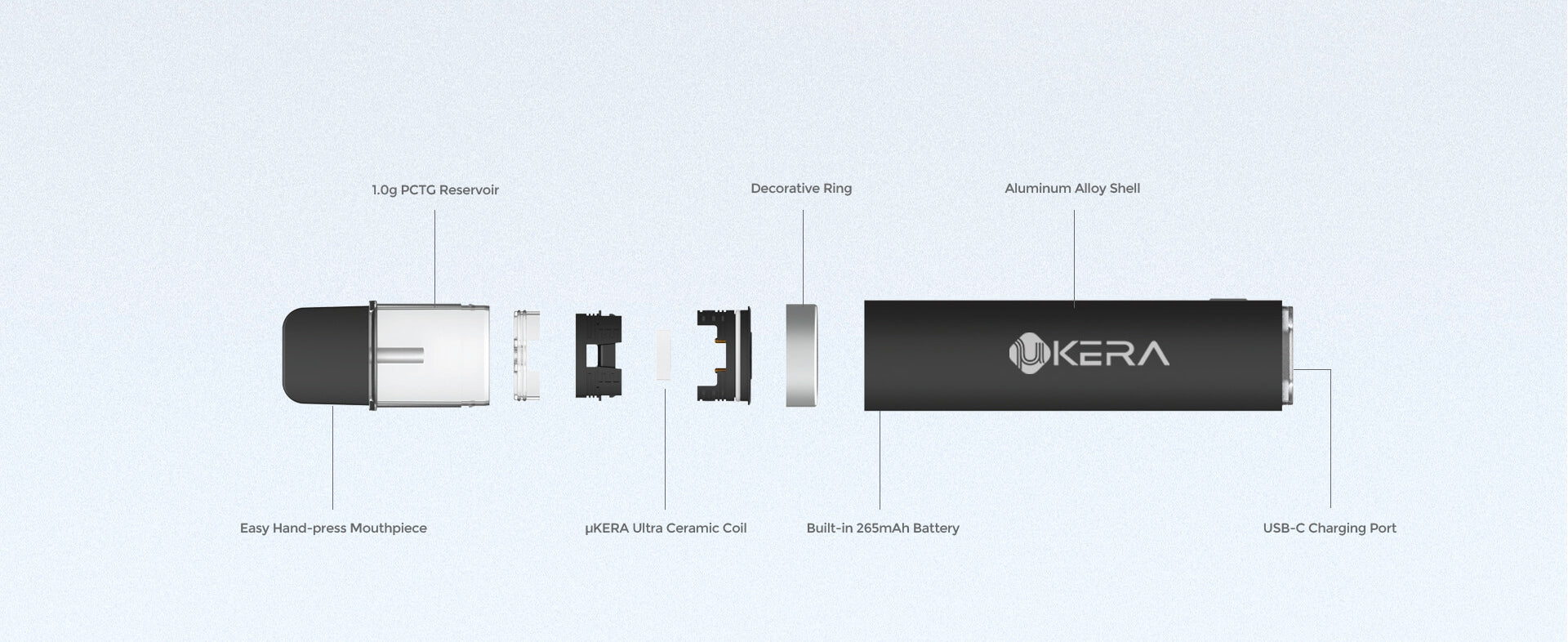 μKERA Ultra is equipped with a 3s preheating function. Press the button twice before use for 3s low-temperature heating, which can well avoid oil clogging.